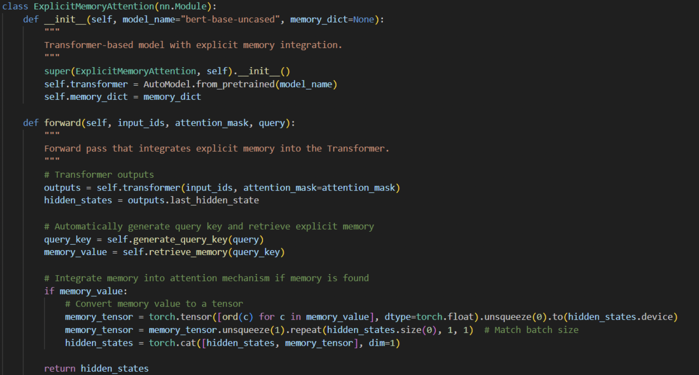 - Enhanced Complexity: By adding explicit memory, the model gains additional components such as memory encoding, storage, retrieval, and integration into the self-attention layers. These components increase the complexity of implementation and maintenance.