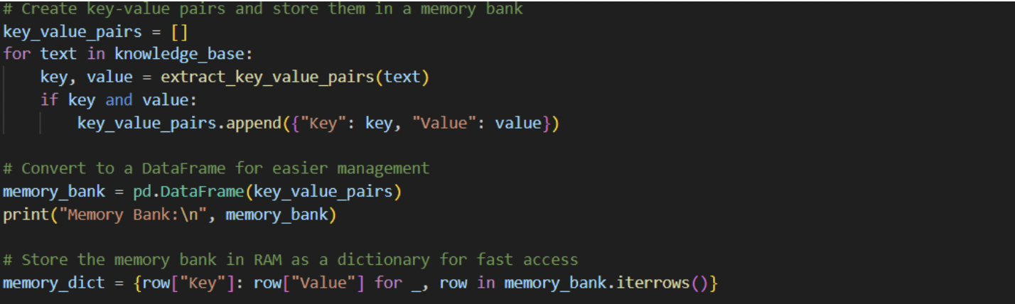 2. Storing the key-value pair in memory bank