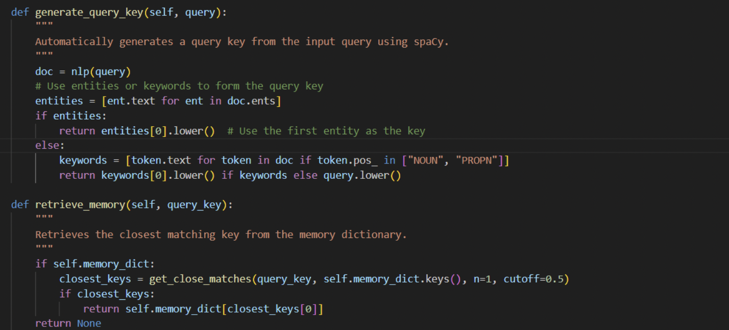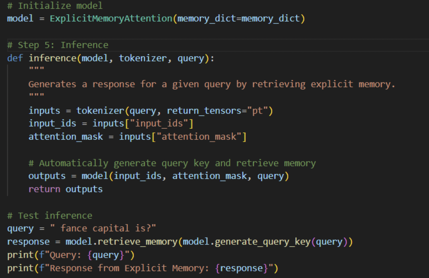 The model tokenizes and encodes the query. The model then looks through the memory bank for the key-value pairs that are most pertinent.